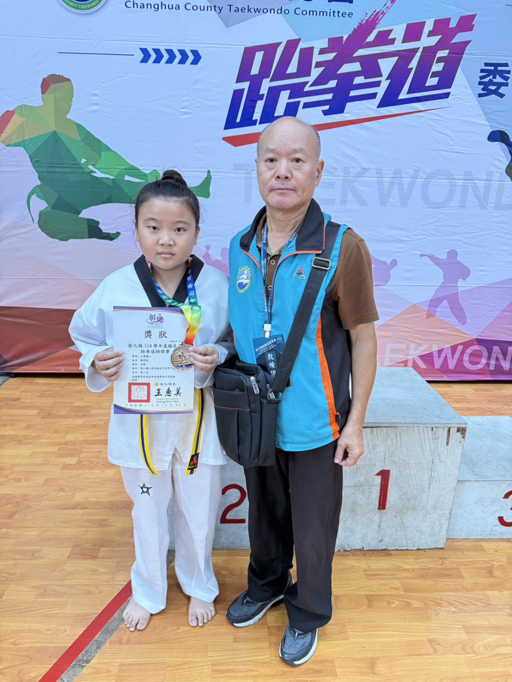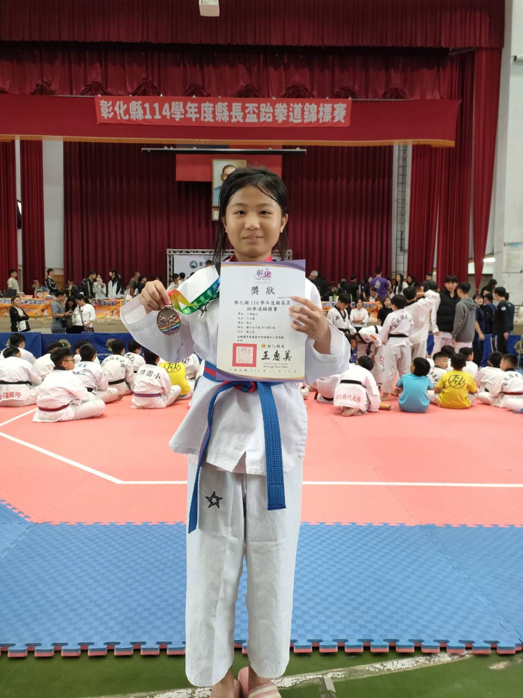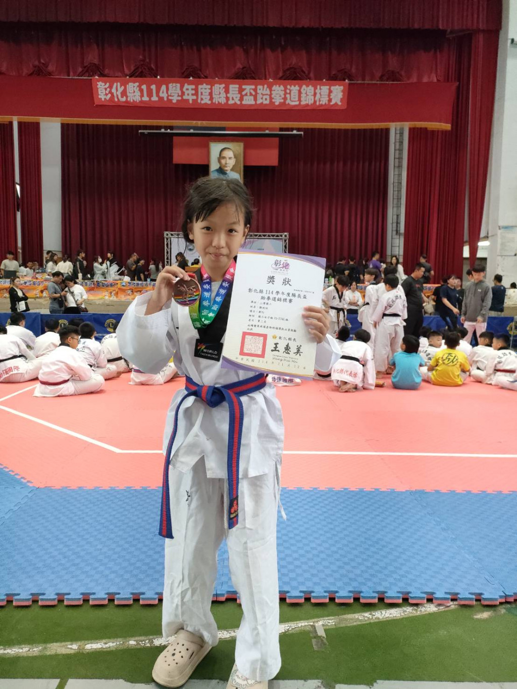 四年甲班鄭宛欣同學參加彰化縣114學年縣長盃跆拳道錦標賽榮獲 對打 國小女子組25-27公斤級第三名!(銅牌)